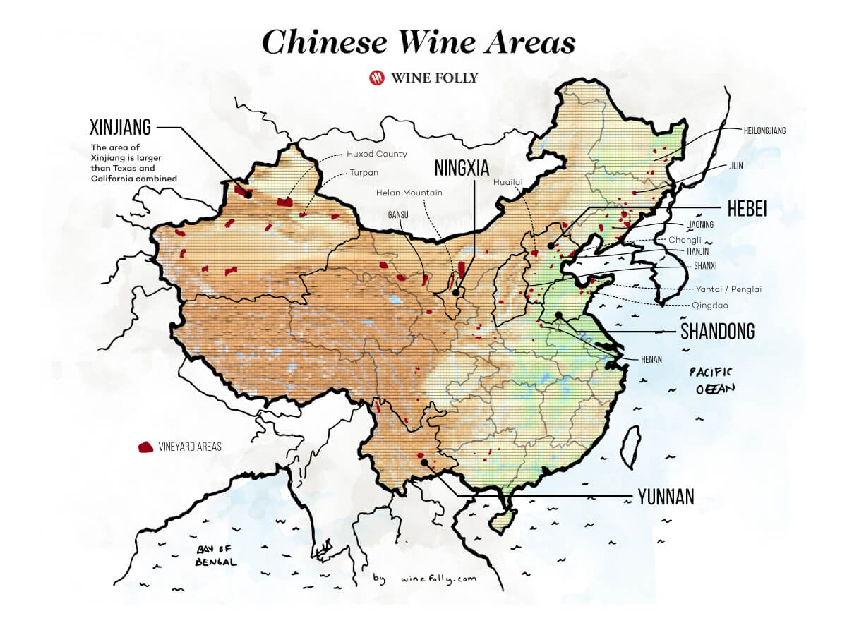 Ningxia is home to the most critically acclaimed wines in China. The region specializes in Bordeaux varieties, including Cabernet Sauvignon, Merlot, and Cabernet Gernischt (Carménère). You will find Carménère planted throughout the many wine growing regions of China too.