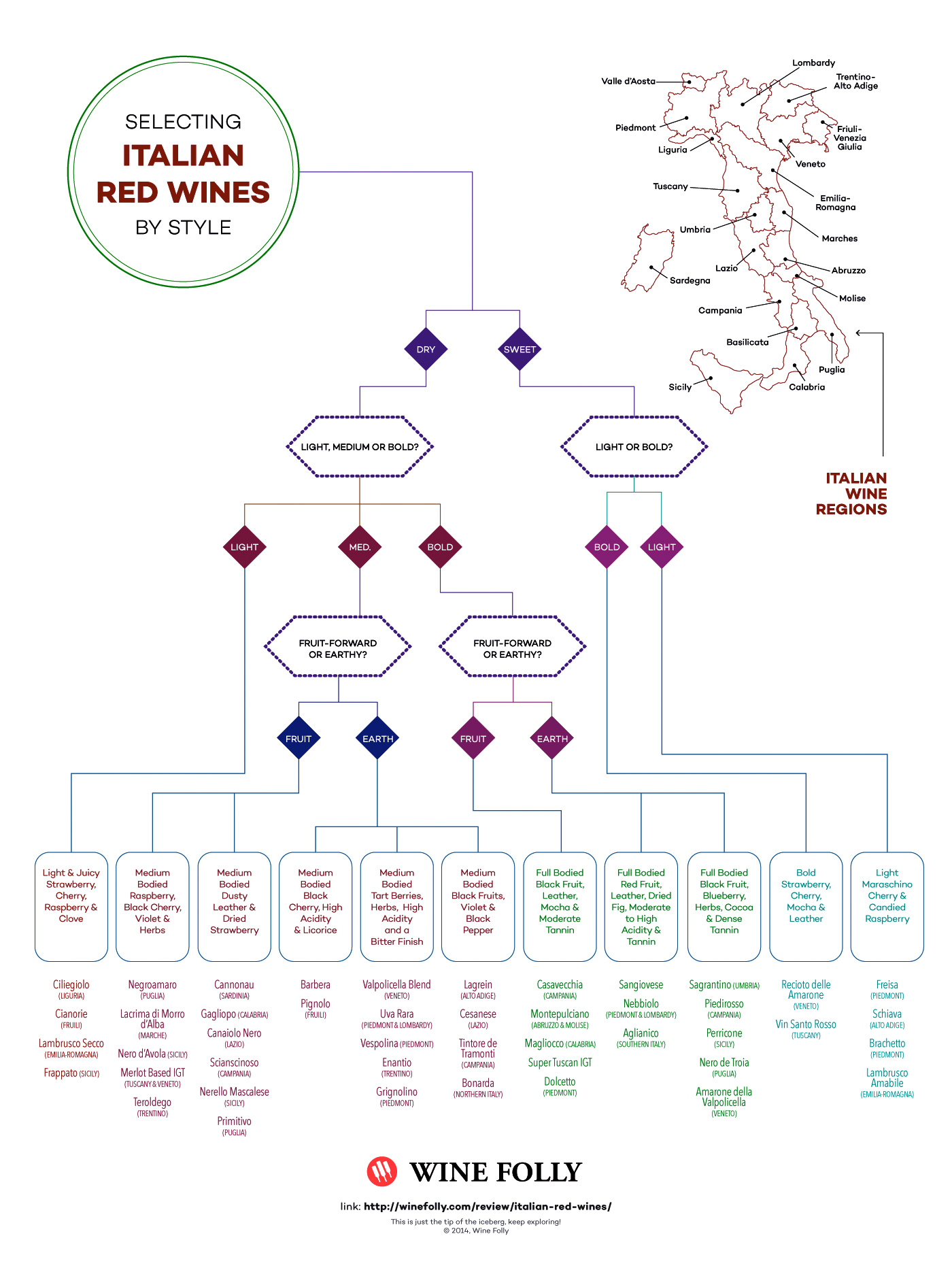 - Fruity vs earthy: Italian red wines tend to be fruitier from the south and earthy from the north.