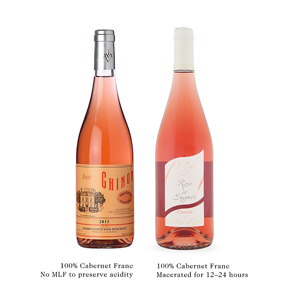 Chinon is a region in the Loire Valley that’s famous for its red Cabernet Franc wines and a small amount of Saignée rosé. These wines are usually tangy with aromas of wild strawberry, crushed rock, raspberry, and subtle notes of licorice or herbs. You’ll find them to be a bit more medium-bodied than many Loire rosé wines because they’re picked at optimal ripeness for red wine making (rosé is typically picked a little earlier). The fruit flavors are riper and the body is a little wider in the mouth.